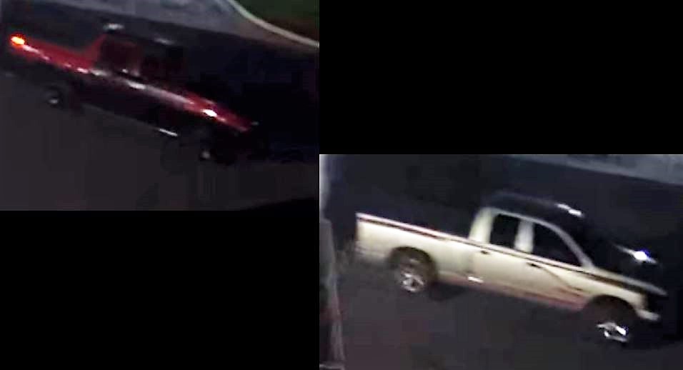 The theft happened early Tuesday morning, 10/05/2021, between approximately 0435-0447 hours: two trucks were observed pulling into the rear of the closed business in the loading area.