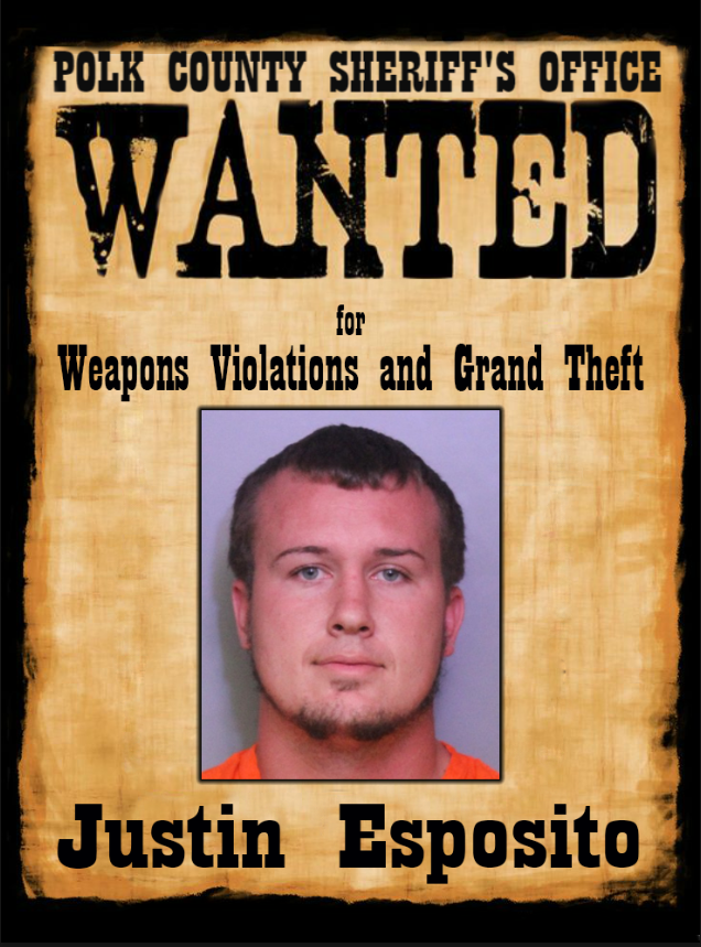 Justin Esposito is about 6-feet tall and 185-pounds. His last known address is on Sharon Hill Court, just off of Thornhill Road (west of Winter Haven).